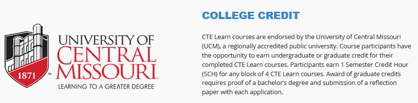 Guam ACTE announces a special offer to Guam & the Region's CTE Professionals! Take advantage of significant cost savings by enrolling in CTE LEARN. Choose as many of the 180 CTE LEARN Professional Development Courses. Receive Continuing Education Certification and/or College Credit through University of Central Missouri. As a bonus, become a member of Guam ACTE and receive an additional 10% off!